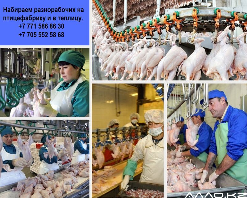 - Работа в России. Зарплата два раза месяц 15 числа и последний день месяца /Еженедельные авансы/Проживание, питание бесплатно Компания ПРО работа набирает разнорабочих на работу в птицефабрику и теплицу. Опыта работы не требуется, мы всему научим! Работа не сложная, У нас есть места для мужчин и женщин, для семейных пар. Обязанности: Упаковка, укладка , фасовка продукции Что мы предлагаем: · Фиксированная почасовая оплата, за смену от 18 600 тг чистыми на руки. · Проживание бесплатно, есть вай-фай и семейные комнаты. · Выезд в Россию происходит бесплатно и еженедельно. · Бесплатное питание горячими комплексными обедами в столовой. · Авансирование каждую неделю от 15000 тг. · Выплата 2 раза в месяц, во время без задержки · График 6/1 или 7/0, смены по 11-часов. · Мы прямой работодатель. · Быстрое и бесплатное трудоустройство в день обращения. · Работаем официально, оформляем все документы в РФ для Вас. · Есть премии и бонусы. · Спец одежду выдаем бесплатно. Условия Минимальная вахта от 45 смен 1) За 45 смен вахты - 837 000тг 1) За 60 смен вахты - 1 116 000тг. 2) За 90 смен вахты– 1 674 000 тг. На Вахте есть все необходимое и даже больше! На работу возит бесплатный автобус 10 минут в пути. На производстве есть своя столовая, холодильники, . Так же есть душевые, сушильные комнаты, прачечная, раздевалка с личными шкафчиками. Чистый 2-х этажный хостел, со стиральными машинами, кухней, душевыми и т.д. Требования Ответственность Дружный коллектив, работаем весело! Одна из лучших вахт за рубежом! ЗВОНИТЕ НАМ ИЛИ НАЖМИТЕ ОТКЛИКНУТЬСЯ!! Количество мест на вахте ограничено!!! Не упустите свой шанс на бесплатное трудоустройство!!! https://wa.me/message/322HN23DTRTOK1